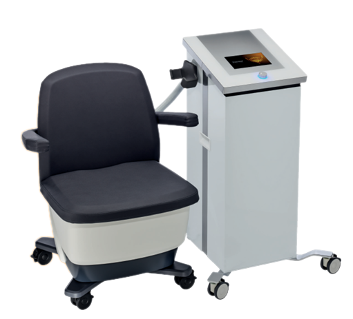 Đầu phát lớn tích hợp trên ghế điều trị, cho phép kích thích tối ưu toàn vùng cơ sàn chậu.
