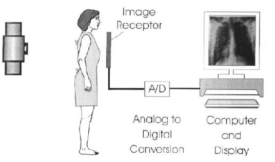 Quy trình chụp Chiếu tia X -> Ghi hình trên phim -> Xử lý phim bằng hóa chất Chiếu tia X -> Ghi hình bằng detector -> Chuyển đổi thành tín hiệu kỹ thuật số -> Hiển thị hình ảnh trên màn hình